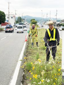 今年度も総勢31名で西条市産業道路・中央分離帯約1㎞周辺のゴミ拾いと草刈り等の